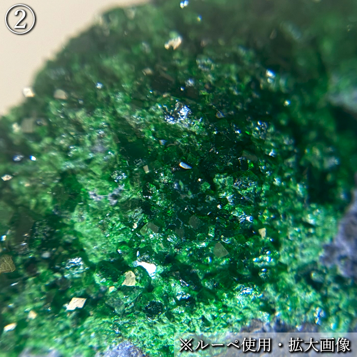鮮やかなグリーンにキラキラと輝く小さな結晶は美しくとても個性的で、それがウバロバイトガーネットの大きな魅力となっています。