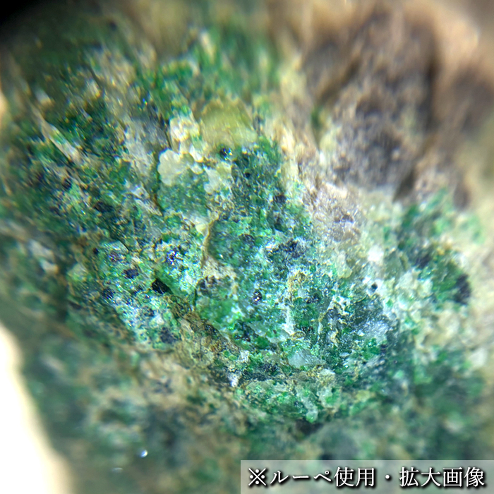 こちらは、グロッシュラーの中でもクロムを多く含む緑色タイプで、発色は深く、結晶は非常に小粒です。