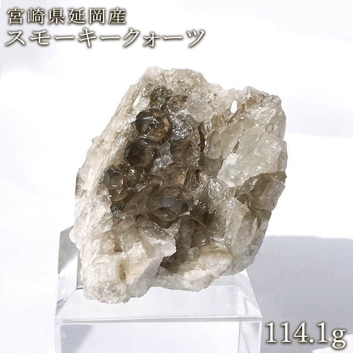 スモーキークォーツ 原石 約114g 宮崎県産 延岡市【 一点もの 】証明書付き 台付き 国産天然石 国産水晶 Quartz クォーツ 結晶 鉱物 お守り 浄化 開運 天然石 パワーストーン カラーストーン [12110000094502602102]