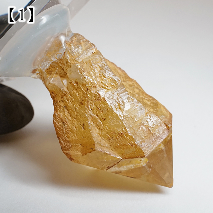 こちらの原石は、酸化鉄の影響により淡いイエローを帯びた発色と、美しい透明感、上品なテリが魅力の水晶です。
