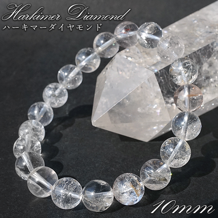 ハーキマーダイヤモンド 約10mm ブレスレット アメリカ産 【一点もの】Harkimer Diamond 希少 オイルイン アクセサリー 水晶 クリスタル クォーツ コレクション 4月誕生石 エネルギー 浄化 厄払い 厄除け 魔除け 邪気払い ヒーリング 鉱物 お守り 天然石 パワーストーン [01011001084002503001]