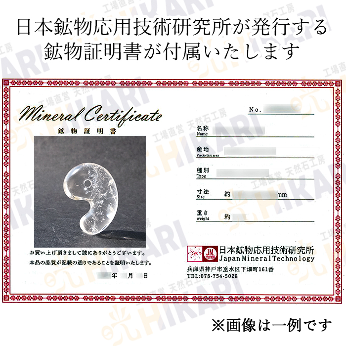 ※日本鉱物応用技術研究所が発行する証明書が付属いたします。