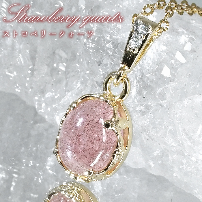 ストロベリークォーツ ペンダントトップ ブラジル産【一点もの】Strawberry quartz K18 日本製 4月誕生石 水晶 アクセサリー ヒーリング エネルギー いちご イチゴ 苺 内包物 お守り 浄化 厄払い 厄除け 恋愛運 鉱物 天然石 パワーストーン [14020000807602212001]