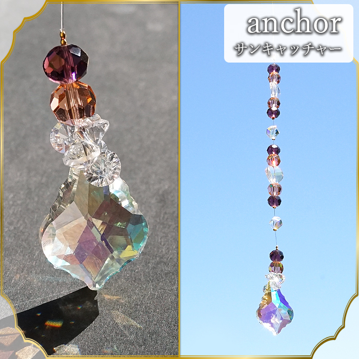 サンキャッチャー Anchor ロング アンカー ガラス オリジナル 日本製 自社製 飾り物 縁起物 インテリア 開運 アイテム 運気アップ 幸運 雑貨 太陽光 虹 窓 卓上 窓辺 吊り下げ キラキラ シンプル ビーズ 上品 玄関 カラーストーン