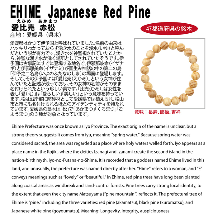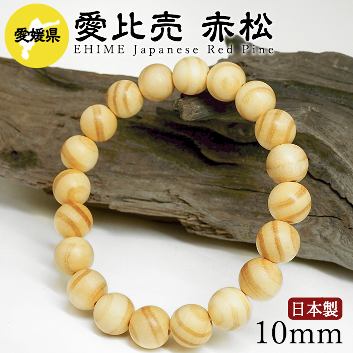 愛比売 赤松(えひめあかまつ) ブレスレット 10mm 愛媛県【日本銘木】47都道府県 EHIME Japanese Red Pine 自社製 日本製 希少 松 県木 長寿 節操 吉祥 女神 ひめ 女性 愛 美しい あかまつ 天然木 パワーズウッド