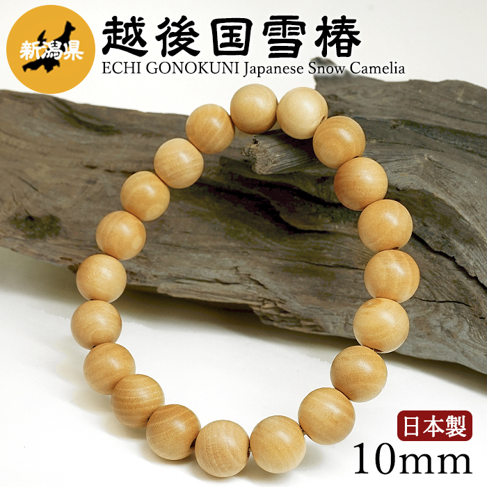 越後国雪椿(えちごのくにゆきつばき) ブレスレット 10mm 新潟県【日本銘木】47都道府県 ECHI GONOKUNI Japanese Snow Camelia 自社製 日本製 希少 県木 ツバキ 忍耐 誠実 気品 天然木 パワーズウッド