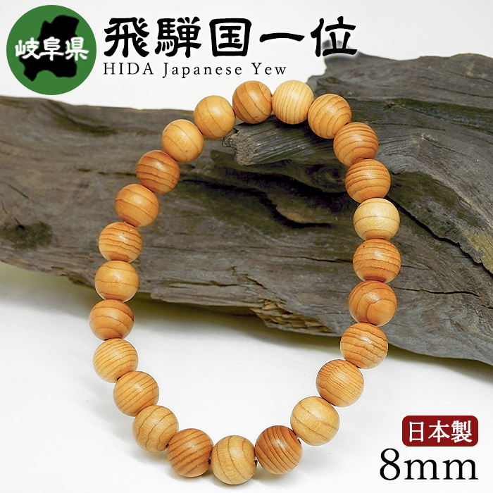 飛騨国一位(ひだこくいちい) ブレスレット 8mm 岐阜県【日本銘木】47都道府県 HIZENKOKU Japanese Cypress 自社製 日本製 県木 神聖 高貴 品格 慎み 一位 針葉樹 天然木 パワーズウッド