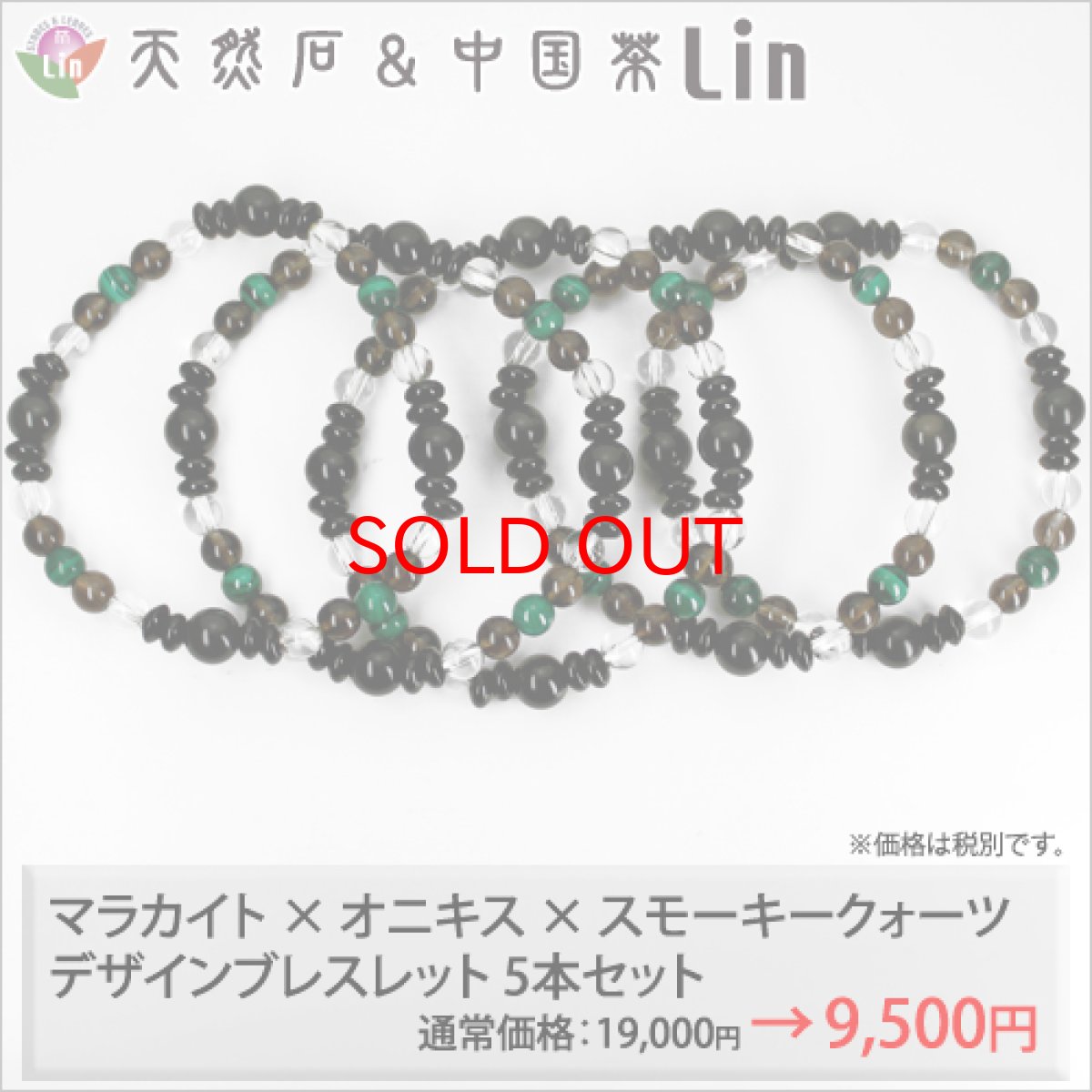 【20%OFFセール】 【まとめ買い】マラカイト×オブシディアン×スモーキークォーツ デザインブレスレット◆内周:18〜18.5cm◆5本セット◆NET【送料無料】 [cb-1216-27-10]