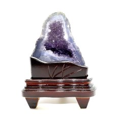■アメジストドーム アメジストは円錐形の母岩の中に内側を向いて生えています。その母岩を二つの割ったものがアメジストドームです。 アメジストの紫色の結晶が花を咲かせたように乱立して美しいです。 このアメジストドーム、この安定感と形がまるで達磨さんみたいだと思いませんか? 静かに鎮座しているかのようなその姿に、独自の意思のようなものを感じます。中に生えているアメジストは、大きな紫陽花が大輪の花を咲かせているかのようで、大変美しいです。 内部の空間の許容量が広いので、アクセサリーを浄化させるのに使用することもできます。特殊なパワーを内に宿しているといわれており、宝くじやお金を中に置いておく人もいるようです。 オブジェとしても十分美しいだけでなく、神秘的な魅力とパワーを秘めたアメジストドームはオフィスやリビングにオススメです。 ◆サイズ 内周サイズ:幅約12.4cm×高さ約15cm×奥行き約12.4cm(台座を含めないサイズです。) 重さ:1.84kg(台座を含めない重さです。)